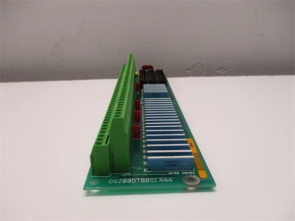 Digital contact inputs 47-96 need organized termination with configurable excitation voltage. The DS200DTBBG1AAA provides high-density termination for the second bank of contacts in Mark V systems, supporting both 24 VDC and 125 VDC interrogation voltages and routing signals to the TCDA expansion input channels via 50-pin ribbon cables.