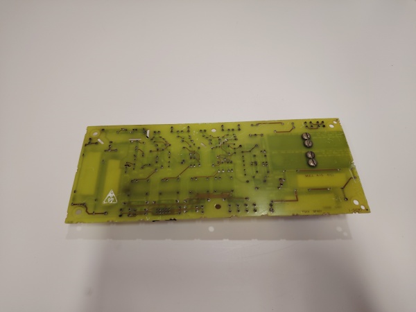 The 20 mm MOV sits across the 120 V input. After a surge it’s hot and conductive; swap the card before you meter or you’ll read a false short.