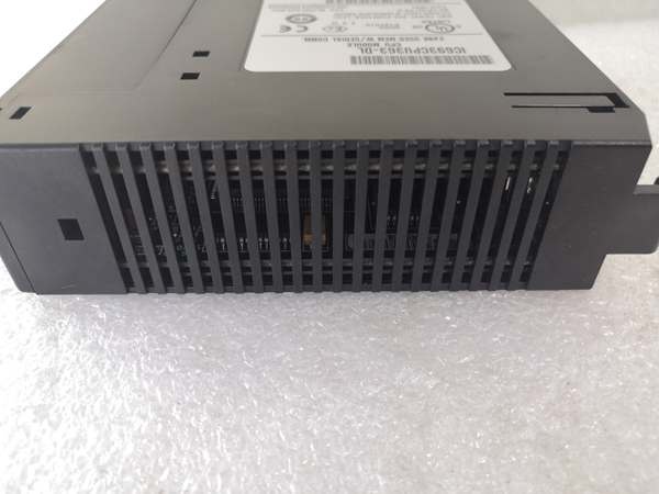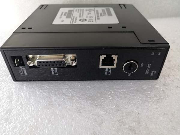 In the control hierarchy the CPU sits at the “main processor” level: it executes the user ladder or SFC program, scans discrete and analog I/O across the Series 90-30 backplane, and communicates with programming tools or SCADA via three built-in serial ports (RS-485/RS-232). Expansion is plug-and-play—add memory daughter-cards or option modules in the same rack to increase RAM or add Ethernet without changing the program file.