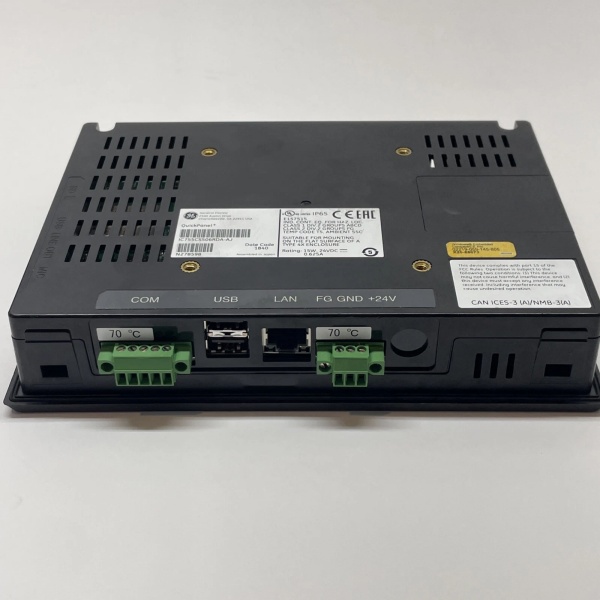 This is a compact HMI designed for quick integration with GE PLCs. The Texas Instruments Cortex-A8 processor runs Windows Embedded Compact 7 and Logic Engine runtime. The resistive touchscreen uses 5-wire technology for reliable operation with finger or stylus, including glove-friendly interaction. The Ethernet port supports GE SRTP protocol for high-speed PACSystems communication. The microSD slot provides offboard storage for data logging and application backups. Serial ports support Modbus RTU for third-party device integration. The device can operate standalone using built-in Logic Engine, executing control logic independently of PLCs. The CE operating system supports standard HMI features: alarms, trending, recipe management, and data logging.