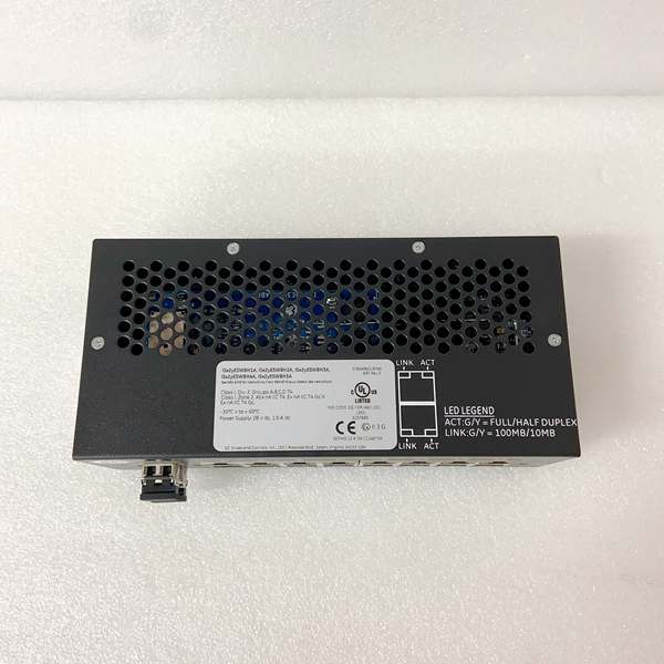 Inside the IS420ESWBH2A is a store-and-forward switch ASIC bolted to an ARM management CPU. The ASIC handles cut-through for IONet multicast frames while the CPU runs a lightweight web server for port stats. IEEE 1588 timestamping is done in hardware—each egress frame gets a 64-bit nanosecond stamp, letting the Mark VIe controllers synchronize within 100 µs over copper or fiber. Redundant power inputs are diode-OR’d with MOSFET ideal-diodes so switch-over is < 1 ms; if both feeds drop the switch keeps its MAC table for 5 ms on internal hold-up caps, preventing IONet re-convergence. No fans, no battery—just a 1 kg block you can swap hot if you tie-wrap the fiber loop first.