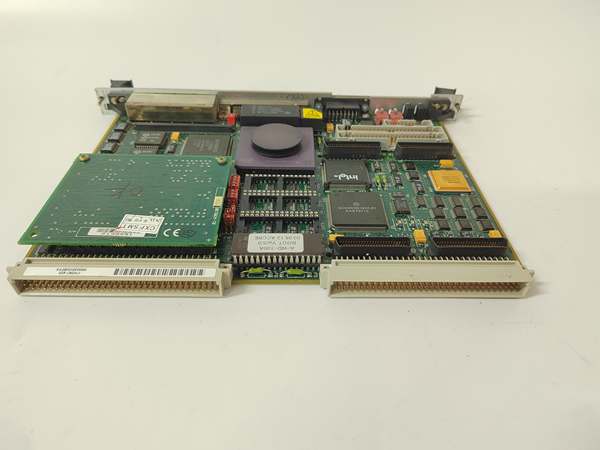 This is a true embedded controller, not a PC on a stick. The 68040 handles everything—no PCI bridges, no complex chipsets. Memory and I/O sit directly on the processor bus, giving deterministic access times that real-time control demands. The VME interface is handled by a Motorola VMEchip2 ASIC that arbitrates local bus vs. VME bus cycles.