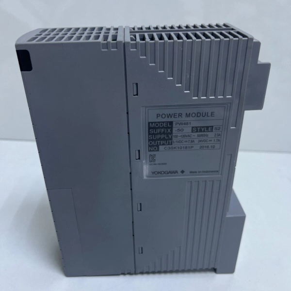 The PW481-50 is not a generic 24V power supply—it is a dedicated AC input power module designed to mount in specific Yokogawa DCS units. It converts 100-120 VAC mains to regulated DC rails (typically 5V for logic and 24V for I/O) that are distributed internally via the unit backplane. The module includes EMI filtering, surge protection, and overcurrent/overvoltage protection circuits. It communicates fault status to the host processor via the backplane.